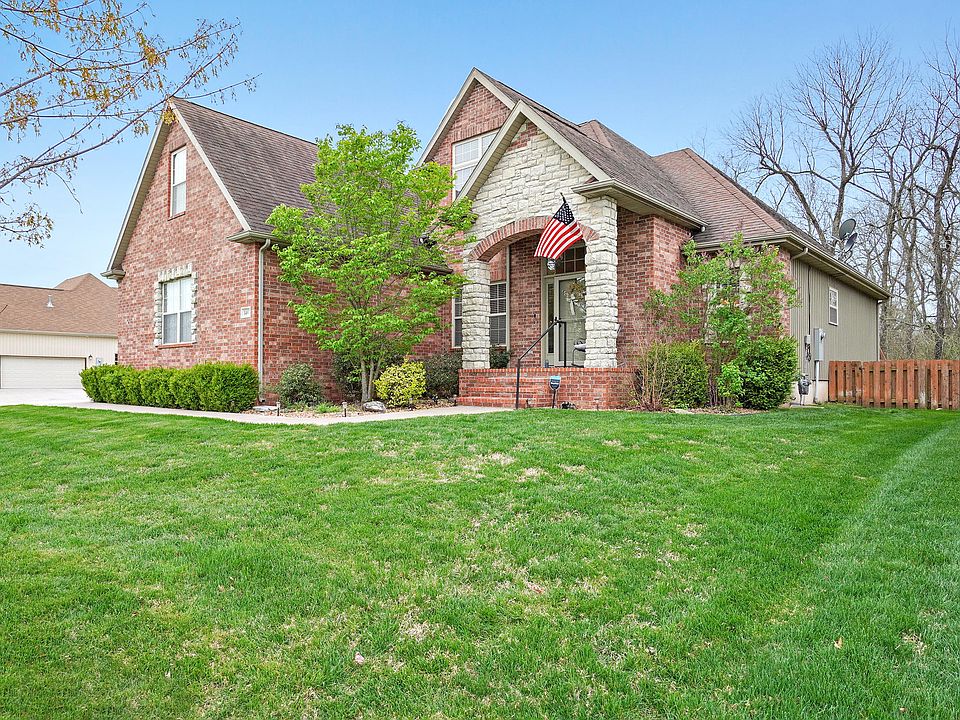 Welcome to the quiet Old Town at Kerr Place subdivision situated east of Republic for easy convenience to Springfield! Republic Schools! This beautiful 1.5 story traditional home is situated on a corner lot with plenty of parking with a 3 car garage and backs up to woods for a private feel to your back yard space. This home is stunning inside and out with high ceilings and lots of natural light. This spacious kitchen includes granite countertops, island that opens up into the living room, complete with a gorgeous fireplace and wood floors in the main living space. This home has 4 bedrooms - one currently used as a home office plus a bonus room/media room/2nd living space upstairs. Fall in love with the nicely sized master suite with a oversized master closet, walk in shower and garden tub to relax in at the end of a long day. Nicely sized closets throughout for great storage and nice upstairs bedrooms offer more privacy for teen children, guest space or mother in law quarters. This home has a great floor plan, perfect for large family or just that feeling of great space. There is a fenced back yard perfect for small children or pets and a covered back patio, gorgeous pavers and a gas fire pit and a children's play area with plenty of room for entertaining. This home includes a 6 person tornado shelter in the garage built by Missouri Storm Shelters that the sellers are including with the property for that additional feeling of safety during severe weather. This home is perfection and will not disappoint! Be sure and check out the walk-through video attached to listing. Call us today to schedule your private viewing of this property before it's gone! Due to the COVID-19 Pandemic Agents PLEASE following showing instructions in agent remarks for everyones safety. We currently ask that showings be limited to decision makers only and agents/clients follow safety precautions noted in agent remarks. Thank you for your understanding during this unprecedented time.