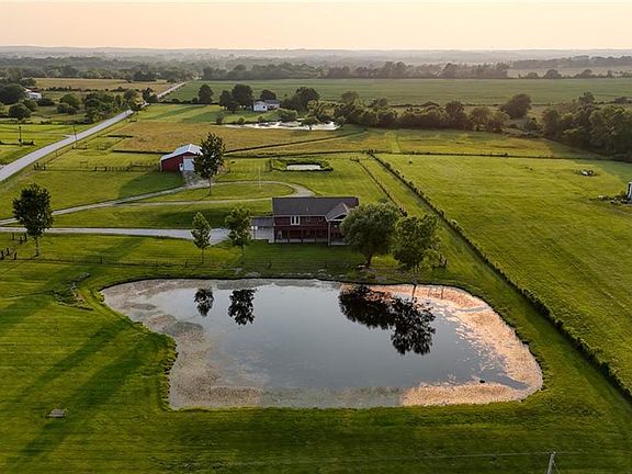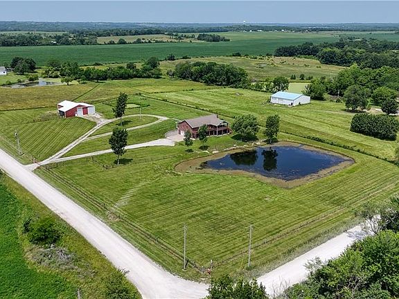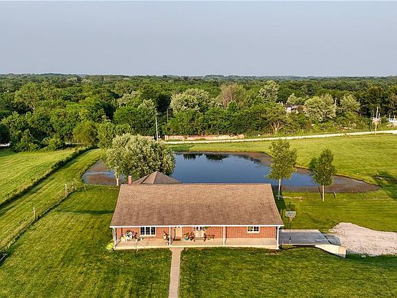 Welcome to Paradise on 11+ Acres, featuring an all brick ranch home with a finished walk-out basement, a 30x50 outbuilding with concrete floor plus 12x40 north side is set up for RV storage. You're happy space will likely be spent enjoying the view of the stocked pond from the 16x23 covered patio off the kitchen. there's another large covered porch at the front of the house and from the basement you can walk out to another covered patio area . Great home for entertaining! Hardwood floors, six panel solid wood doors, 6x5 walk in pantry, and so much! Finished basement has media/theater room with projector, wet bar, brick fireplace, newer tiled flooring in main area and full bathroom. Oversized 26x22 garage and large laundry room complete the downstairs area. Bring your horses! Property is completely fenced and ready for animals, complete with a 170 yard shooting range. The pond on back West side of the property is shared. Close to the highway, perfect location for a commuter. Home is move in ready, you don't want to miss out!!