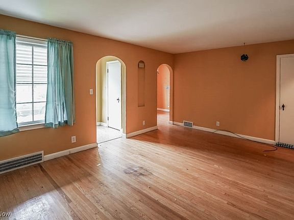 This cozy two bedroom home is a true gem! As soon as you step inside, you'll love the charm of the vestibule entry, archways, and built-ins. The original hardwood floors flow seamlessly from the inviting living room, complete with a wood burning fireplace, to the dining room with a cabinet for storage and display. The efficient kitchen includes appliances and is just waiting for your creative updates. Down the hall, you'll find two comfortable bedrooms and a full bath with linen storage. One bedroom even has sliding door access to a breezeway that connects to the two-car garage. With ample storage in the attic and basement, plus a laundry area, there's room for everything. Enjoy all living space on one floor and a prime location near the Hall of Fame Village and highways. This affordable home is a fantastic find! Schedule your showing today.
