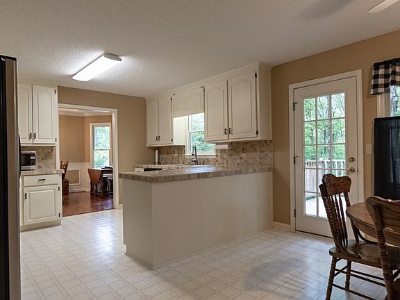 Un-traditional split level with 8 foot wide entry. Large office, full bath and large 4th bedroom with cedar closet on 1st floor. Great room, kitchen and dining on 2nd floor. 3 bed/2 bath on third floor. 2 closets in master bed, (1 walk in). 2 car garage on ground level separated by wall and door. West side of garage is finished with paneled walls and heated for indoor/outdoor recreation. Creek on back of property.