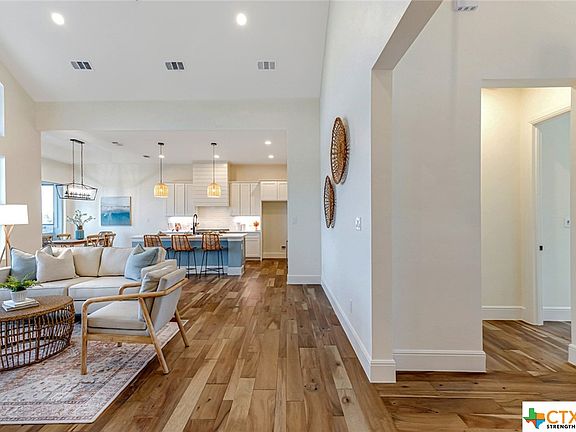Welcome to 1407 Parton, a stunning 4-bedroom, 3.5-bathroom family oasis nestled in the heart of Canyon Lake, TX. This exquisite house boasts an expansive .50-acre lot with breathtaking hill country and lake views, creating the perfect retreat for families and retirees alike. Step inside and be wowed by the spacious open-concept floor plan, complete with engineered hardwood floors, quartz countertops, and top-of-the-line finishes throughout. The chef's kitchen suited with Thor gas appliances is a dream come true, offering ample cabinet space, a large pantry, and an oversized island perfect for family gatherings. An additional refrigerator space and laundry sink in the laundry room add a touch of convenience and luxury. Entertain with ease in the generous living area or take the party outdoors to the vast patio, where you can enjoy the beautiful Texas scenery. The master bedroom is a true sanctuary, offering ample space and stunning views. Located just minutes from Canyon Lake High School, boat ramps, and grocery stores, this property truly has it all. With a 2-car garage and plenty of guest parking, this spectacular home is ready for you to make it your own. No HOA and could also be used as a STR. Don't miss out on this rare gem - schedule a showing today!