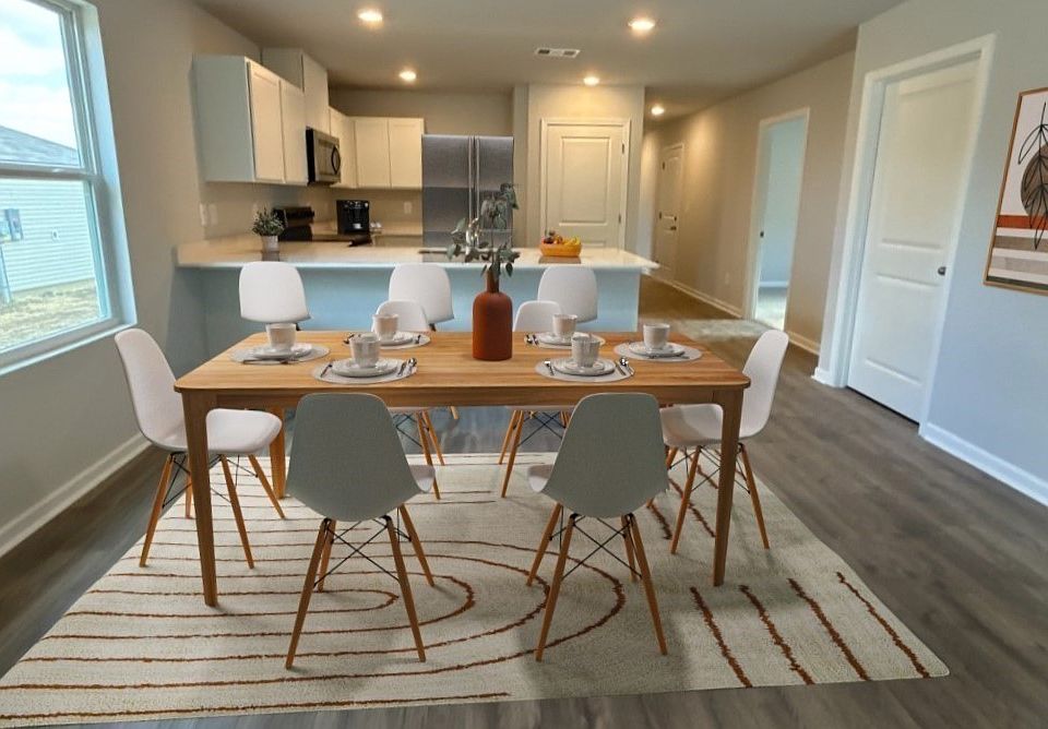Modern furnishings like stainless-steel appliances and quartz countertops combine style and comfort at Saddle Trace. The homes boast three to four bedrooms, two to three bathrooms, and a one-car garage, offering ample space for gatherings and relaxation. Additionally, smart home technology comes standard in the home, enhancing security and convenience.