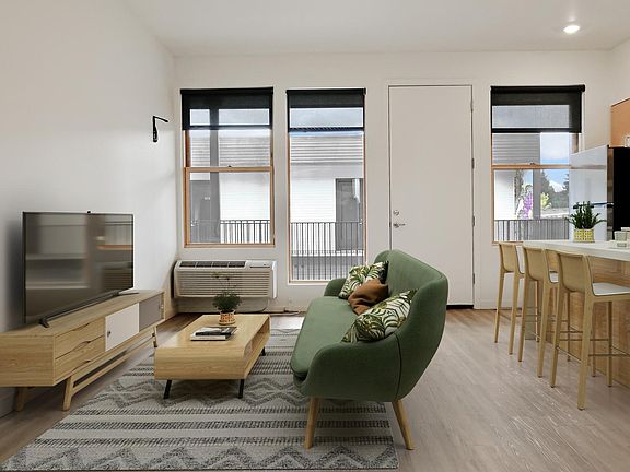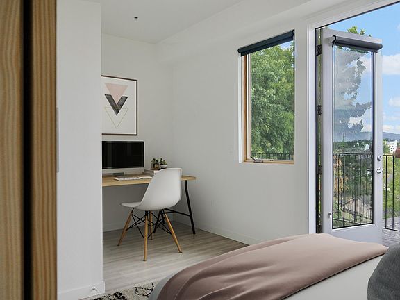 Brand new courtyard style building with spacious 1 bedroom/1 full bathroom units with extra space for home office or desk. All units include a private covered terrace with views to Mt Hood. Located close-in SE Portland in the Brooklyn neighborhood.