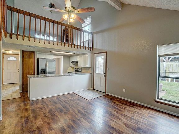 This is just beautiful! Lawton's Eastside, Pebble Creek, this 3 bedroom, 1 3/4 bath home has all been freshly painted inside, features 2 nice living areas, a great kitchen with granite countertops, stainless steel appliances, pantry, breakfast bar, and nice dining area. The primary bedroom is downstairs and has a large walk-in closet, remaining bedrooms are upstairs and the upstairs loft is open to the downstairs giving it a nice open feeling. The owner has put a lot of money and work into making it nice and it shows!