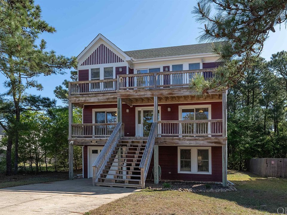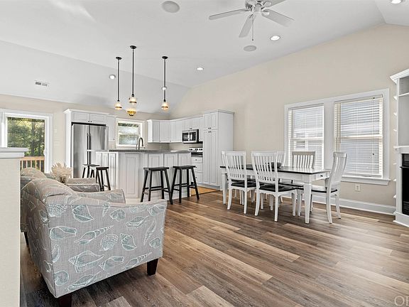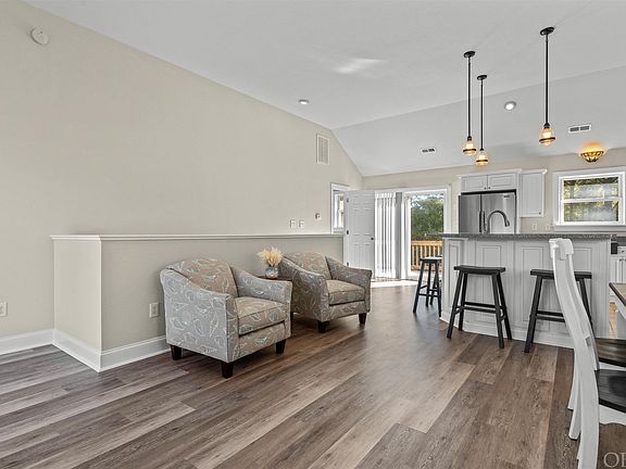 Move In Ready! Step inside this spacious, Westside home in Kill Devil Hills, centrally located and tastefully updated. A 4 bedroom, 3.5 bathroom home boasting a reverse floor plan that maximizes space, privacy and functionality. As you enter from the 1st level dry entry, there is a large flex/living area, perfect for family room, playroom, gym/office or entertaining. The 2nd level has 3 ample bedrooms and laundry room with storage room and folding area. The large 2nd level deck has been prepped for a hot tub. The 3rd floor is a bright, open-concept kitchen/dining/living area, perfect for entertaining guests or enjoying cozy family dinners by the fireplace. The kitchen features all like-new stainless Maytag appliances, never used since purchased last year. Retreat to your private master suite and bath on the top floor, with large jetted tub, separate shower area, dual sinks and water closet. The top floor is flooded with natural light, creating a welcoming ambiance and visual appeal. Two large decks on the front and rear of this floor expands your living spaces to the outside! With modern finishes throughout and a prime location, this home is a true gem for those seeking style, comfort and a move in ready home. **Updates include; fresh, neutral interior paint, Luxury Vinyl Plank throughout, Maytag Kitchen appliances. Furnishings DO NOT CONVEY.