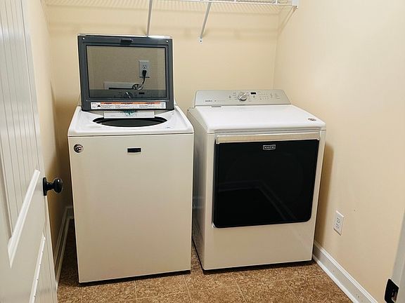 Introducing this stunning 4 bedroom, 2 bathroom home in the desirable Tupelo Hills neighborhood of Elgin. This gorgeous home features an attached 2-car garage, private driveway, and sits on a spacious 1.98 acre lot. Enjoy the beautiful backyard deck and large backyard perfect for outdoor entertaining. Inside, you'll find hardwood style flooring, carpeted bedrooms, granite countertops, a kitchen island, and vaulted ceilings in the living room for a modern touch. The dual bathroom vanity and oversized soaking tub add a touch of luxury to this already impressive home. Even on chore day, the laundry room with additional shelving and the industrial size Maytag washer/dryer (life-time warranty) has your back! Don't miss out on the opportunity to make this house your home - available now! Included with Rent: Water, sewer, and garbage collection. Pets negotiable. Contact us to schedule a showing.