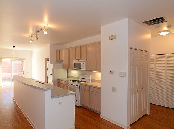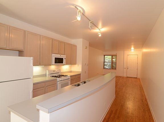 Beautiful first floor two bedroom/1 bath unit in a great university location and condition. Open floor plan w/ hardwood floors throughout, maple cabinets, in-unit laundry, large kitchen island & nice back patio. Large bathroom with double bowl sinks. All rooms have window treatments. Quick access to taylor street, downtown and expressways. Close to everything. Easy street permit parking