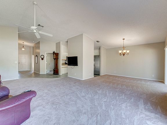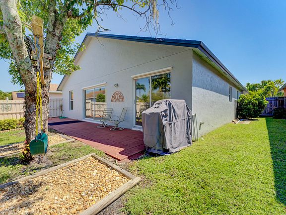 PERFECT CENTRAL WELLINGTON AREA CLOSE TO EVERYTHING! ZERO LOT LINE HOME WITH 2 CAR GARAGE AND PRIVATE FENCED BACYARD WITH NO DIRECT REAR NEIGHBOR HOME. A DESIREABLE SPLIT BEDROOM FLOOR PLAN WITH VAULTED CEILINGS IN MAIN LIVING AREAS AND PRIMARY BEDROOM. TILE FLOORING IN FOYER ENTRANCE HALLWAY AND KITCHEN, BRAND NEW CARPET IN ALL OTHER ROOMS. KITCHEN HAS GRANITE COUNTERTOPS, SS APPLIANCES AND EXTRA WORK STATION W/STORAGE. ROOF REPLACED IN 2016, A/C IN 2017, H2O HEATER 2023 & UPDATED MAIN BATHROOM IN 2019. THERE IS A SCREENED FRONT PORCH ENTRANCE AND FULL HURRICANE PANEL PROTECTION ON ALL WINDOWS. JUST A SHORT DISTANCE TO WELLINGTON TOWN CENTER SHOPPING. VERY LOW HOA FEE OF $125 PER QUARTER. THIS HOME EVEN COMES WITH A DOUBLE TREE SWING IN BACYARD!