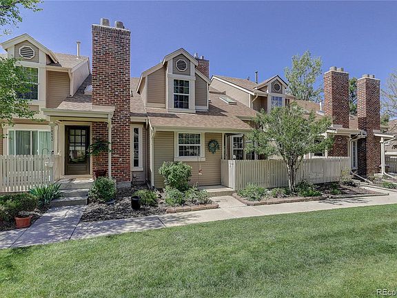 Beautifully maintained Quincy Hill town home. Enter from small private courtyard into bright two story living room with vaulted ceilings and two skylights. Solid oak hardwood floors on main level. Living room features gas insert fireplace and is open to dining area. Ample cabinet space in kitchen with Kohler sink, solid surface counters and tile back splash. Cozy loft upstairs overlooks living area. Master bedroom has 2 closets and ceiling fan. Full finished basement including large storage closet. Windows, skylight, hardwood floors, carpet, fireplace, faucets,lighting,interior paint updated/installed recently. Central air and heat plus an attic fan. Quiet interior location in Quincy Hill, close to Cherry Creek State Park and light rail.