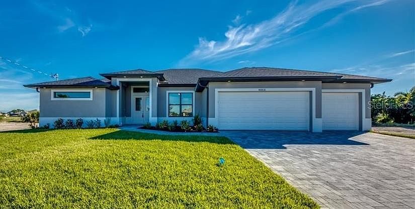 Under Construction. - Gulf Access Pool Home to be completed in approximately in Early October 2023. Don't miss out on this amazing opportunity to snatch up this beautiful single family home. This home is located in the highly desirable South Gulf Cove area right on the Santa Cruz waterway with access to the bay, and also the intercostal waterway. This beautiful brand-new home will have 3 bedrooms and a den, 2 bathrooms, 3 car garage. The Bermuda plan features an open concept floorplan, cabinets are white shaker style with stainless steel appliances. All windows are impact and slider will have shutters provided. South Gulf Cove is a sportsman community with boating, golf, fishing and great local restaurants nearby with less than 20 minutes of idle speed to the lagoon! PHOTOS ARE OF THE SAME MODEL IN A DIFFERENT LOCATION, FINISHES ARE SIMILAR*