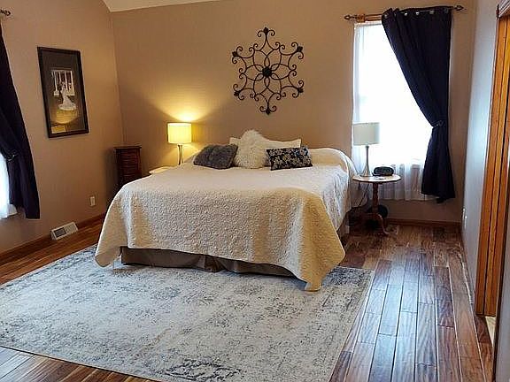 Welcome to 14071 Barrington Drive. This spacious 4 bedroom, 3.5 bath, 2 + garden garage, provides beautiful views from every room. Upon entering you will find beautiful hardwood flooring, vaulted ceilings and a open floor plan that is perfect for hosting your large gatherings. The newly renovated master suite is situated on the main level. Beautiful bright bathroom has a large walk in shower with dual shower heads, soaker tub, and large walk in closet. The large kitchen was recently updated as well. You will be able to host your next gathering with ease. Features lots of cabinets and counter space. New stainless steel appliances, and two refrigerator/freezers fit perfect into this space. The countertops are granite and the island has a custom concrete surface. The dining area is open to both the kitchen and living room. The living room also has vaulted ceiling’s and a gas fireplace. The main level also has a 1/2 bathroom, laundry room, office, and very large storage room to hold any kitchen gadget you need! Upstairs you will find 3 bedrooms and a large bonus room attached to one of the bedrooms. This bonus room makes the perfect toy room or extra tv room for your kids or guests. The bathroom has double vanity and lots of storage space! The basement is finished with a non-conforming 5th bedroom or office. Bathroom with double vanity. The family room is perfect for movie night with the family! Lots of light in this basement with windows and sliding door to the 1 acre back yard. Enjoy game night in the built in nook, and bar area. Snuggle up on a cold winter day with a good book next to the pellet stove that provides additional heat. The basement also has a very large storage room, and garden garage with workshop space. Outside you will enjoy the backyard from the covered deck, large patio, or fire pit area all summer long! You will be able to meet your neighbors at all of the facilities: tennis courts, sports court, play ground, pavilion and beach area are sure to be enjoyed! If you are ready to make this your next home, call us today!