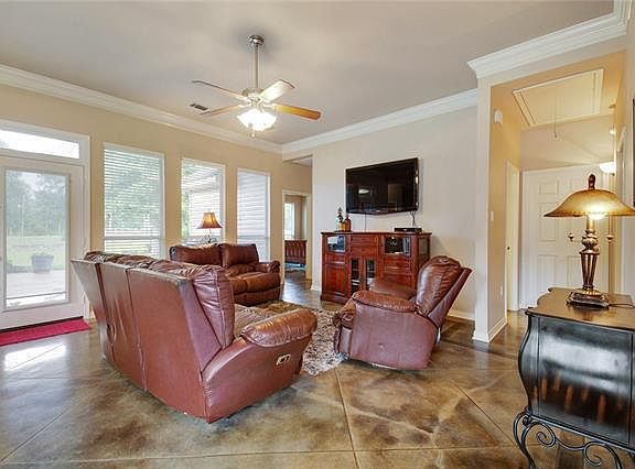 Country Beauty! Completely fenced 2 acres with two gated entrance points. A 20x20 shed on concrete flooring with lighting that could be a workshop. Home features open kitchen, living, dining concept. Split floor plan has 3 bedrooms and 2 baths. Large concrete driveway leads to attached carport with storage room and patio which makes for fantastic outdoor entertaining. Gardening area set up with raised boxes and water.
