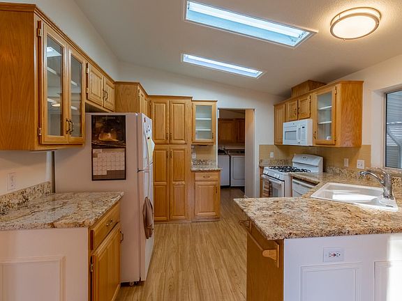 Spacious 3-bedroom, 2-bath, well-maintained home located in a desirable 55+ community.Ideal for those seeking calm surroundings and community engagement. Recent upgrades include a brand-new refrigerator, a new garbage disposal, and energy-efficient window screens that help keep maintenance easy and utility costs low. The freshly painted interior and exterior offer a clean, welcoming feel, enhanced by granite countertops in the kitchen and a built-in window seat that invites relaxed mornings or cozy conversations. The Primary bathroom features a soaking tub and a separate shower, along with a double vanity. When power outages occur, your whole-house Generac generator (14 kW Tri-Fuel'' Diesel, Natural Gas, & Propane) ensures continuity of everyday life without a hitch. In addition to the Central heat and air system, there is an evaporative cooler unit for those hot summer days. Water reservoir tank used for watering the yard. Clear pest and roof report.