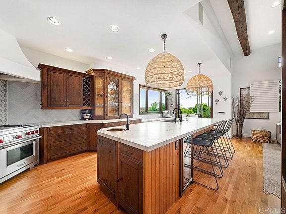 Absolutely stunning Del Mar Heights home, ready to be yours just in time for Summer! As you enter this beautiful contemporary Spanish masterpiece, the entry pillars & exposed wooden beams on the ceiling will have you in awe. Make your way to the meticulously designed chef's kitchen, where top of the line finishes & appliances will have you surely wanting to cook every meal at home. The top floor master suite, complete with ocean views and a private deck, will undoubtedly be your favorite place to unwind.