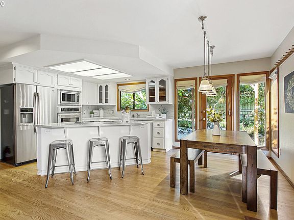 NW Contemporary Style Show Stopper! 4 bedrooms or 3 + Den. Cul-De-Sac! Original Owner & Custom-Built Home. Kitchen updated 2019. Over-sized windows, vaults & skylights send natural light poring through. Office / bdm on main. Hardwood floors & newer carpet on main. Mt. Hood View from Master Balcony. Space on side for possible grass play area. Dog run on side. Sought after schools in coveted Sorrento Summit include: Hiteon elem. Walk to Hyland Forest Nature Park. See virtual tour!