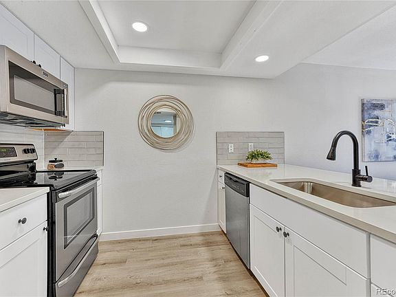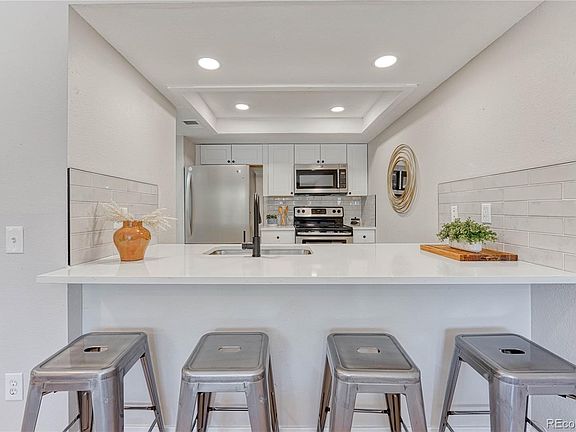 Discover the epitome of modern living in Aurora, Colorado, with this newly renovated 1-bed condo near Cherry Creek State Park and Reservoir. Embrace the charm of nature's beauty while enjoying the comforts of urban convenience. Step into the stylish kitchen adorned with stainless steel appliances, perfect for culinary enthusiasts. The elegant quartz countertops and convenient breakfast bar create an inviting space for meals and gatherings. Relax and unwind in the luxurious bathroom boasting custom tiling that exudes a spa-like ambiance. Additionally, the private balcony offers a serene escape, where you can savor breathtaking views and fresh air.