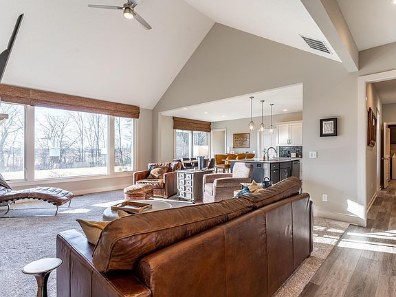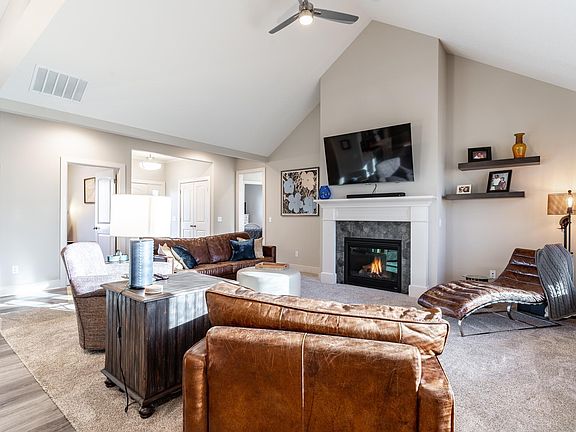 A must see, this exceptional Bob Buescher open concept single story home features 3 bedrooms, 2.5 bathrooms, office, covered back porch, and an enviable 3 car garage with new paint chip epoxy-finished floors. As you enter the home you'll be greeted by sunlight from the large glass pane windows located in the great room and kitchen, offering custom window shades and beautiful, secluded wooded views. The great room also boasts a custom designed river-rock fireplace and cathedral ceilings. Luxury vinyl plank flooring flows throughout the kitchen, dining room, foyer and walkways. Home Chef’s rejoice in this dreamy kitchen! Quartz countertops, a 7X5 island with storage, and an oversized walk-in pantry is just waiting to see what your first home cooked meal will be in this outstanding build. The huge (16x13) primary bedroom is the perfect retreat, with the ensuite boasting a double vanity complete with cultured marble counters, custom-tiled shower, an enormous closet fit for even the most enthusiastic shoe collector, and access to the laundry room from within the master closet. The back covered porch provides the perfect space to relax or entertain. The mature yard and professional landscaping is already in! Located in the serene community of Sage Pointe, surrounded by nature, this beautiful custom home is located minutes from Parkview North, shops, restaurants, and local venues.