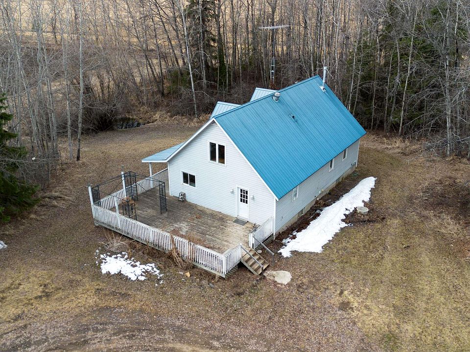 Welcome to your own private slice of paradise! Nestled in a quiet, tree-lined setting, this fenced-in 6.35-acre property offers unmatched privacy, endless serenity, and room to breathe. Whether you're a small hobby farm enthusiast or simply craving a peaceful escape, this property has it all. Step onto the welcoming wrap-around deck of this cozy farmhouse—the perfect spot to sip your morning coffee as the sun rises or unwind in the evening while watching the sunset paint the sky. Inside on the main floor the home features, a full kitchen with pantry , lots of cupboard space, dinning & living area for hosting family gatherings or entertaining friends. a 3 pcs bathroom, laundry room, and a spacious bedroom on main floor. Upstairs you will find a second 3pcs bathroom, along with two bright and welcoming bedrooms. The basement is unfinished , with a cold room. With ample space for animals, gardens, and outdoor living, this property offers the peaceful country lifestyle you’ve been dreaming of!