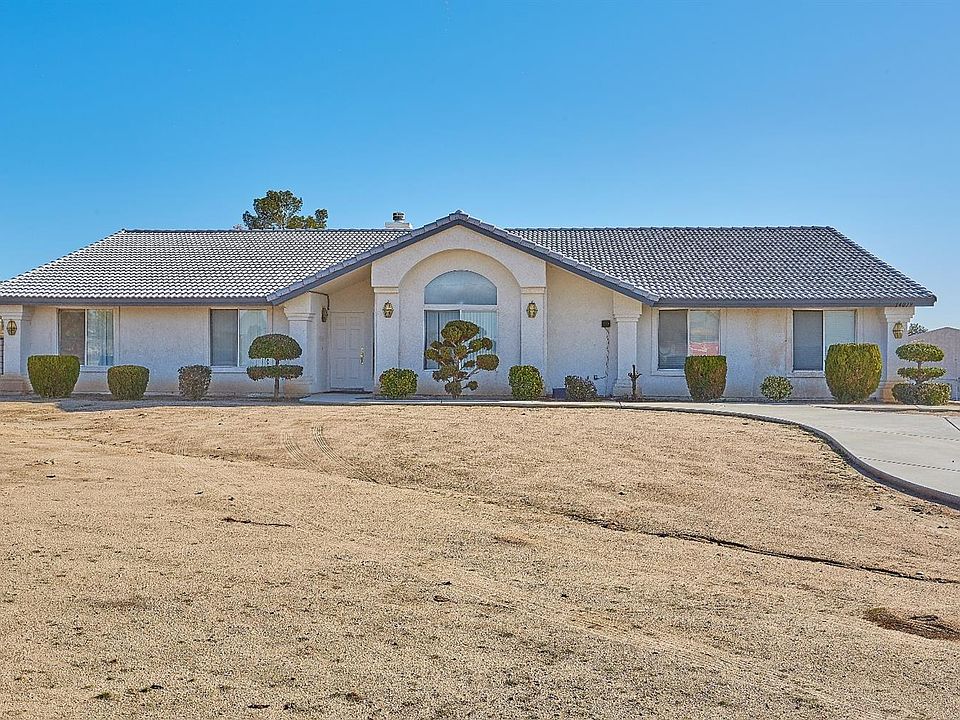 Desert Knolls Beautiful huge corner lot almost a full acre of land one street up from Apple Valley Rd. Quick to the freeway!! Vaulted ceilings. Great OPEN floor plan. Large OPEN kitchen. Granite counter tops with Pantry, huge Breakfast Bar and Island. New ceiling fans, light fixtures and paint throughout. Garden tub and large walk in closet. Lots of concrete on the circle drive and RV parking and 3 car garage!!! Custom build only 1 owner. Very little wear and tear. beautiful view. This is a great house come take a look! MLS# 516399 DRE# 00864559