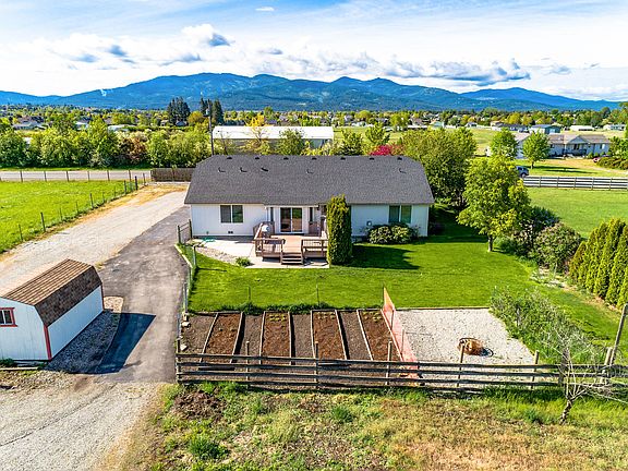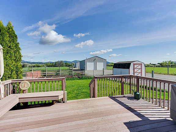 BRING THE ANIMALS AND THE TOYS!!! Wonderful single level home on 4.87 acres with expansive mountain views, but still close to town. The open floor plan has 3 bedrooms and 2 full baths with a large office, gas fireplace in the living room, large kitchen with ample cabinet space and a breakfast bar. Cross fenced and 2 huge shops, the first is a 48'x30' insulated shop with 200AMP power, a wood burning stove, two 12' roll up doors and plenty of room for storage, vehicles, and toys. The second Barn/Shop is 40'x32' and is insulated with a tack room, dual 11'x14' horse stalls that open to dual 30'x15' paddocks, a 12' rollup door. Other features include a front porch, 16'x10' garden shed, fenced vegetable garden, deck, fire pit with seating area, 25'x15'hay barn and peaceful water