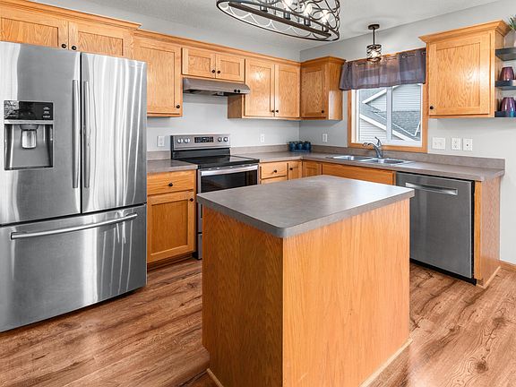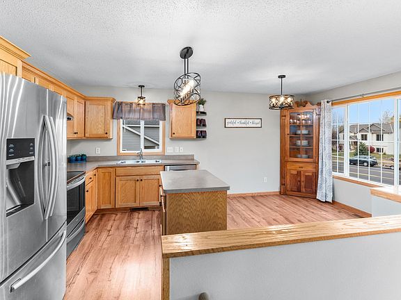 Welcome to 1408 15th Street South in Sartell! This beautifully maintained, move-in ready 4-bedroom, 2-bath home offers an ideal blend of comfort and convenience. Step into the bright, open upper level, where an eat-in kitchen with a center island, sleek stainless steel appliances, and updated flooring await. The upper level also includes three inviting bedrooms, with a primary bedroom offering a spacious walk-in closet. A trey ceiling and stylish ceiling fan bring character to the living room, which opens to a large, private deck—perfect for relaxing or entertaining. Natural light fills every area of the home, creating a welcoming ambiance.