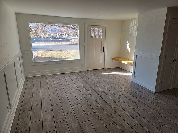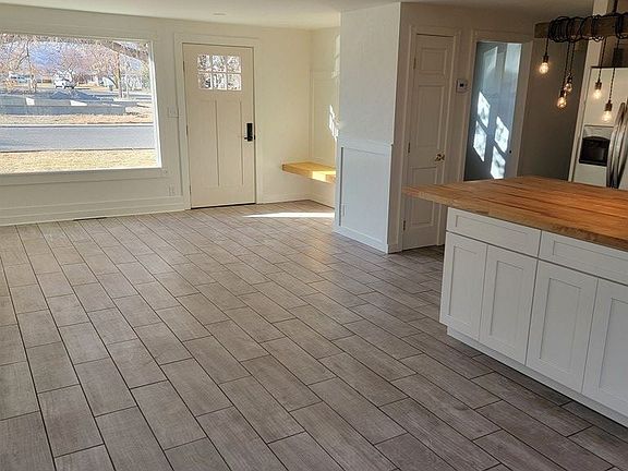 A Clean Slate! The open concept living room/kitchen area is perfect for entertaining. New kitchen cabinets, under mount sink, center island (butcher block), quartz countertop, appliances (1-year). Newer vinyl windows, ceramic tile flooring. Brand new interior paint. Upper rec room and bathroom are ready for your finishing touches. Great in town location.