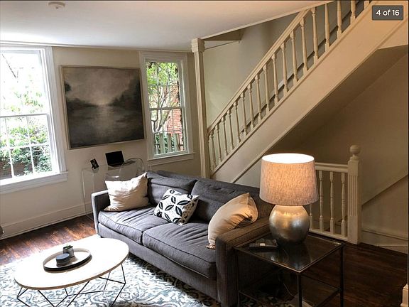 Historic townhouse offering three levels of living space with two spacious bedrooms, 1.5 bathrooms on idyllic block in Georgetown's East Village. Short walk to Dupont Metro, M St shops and restaurants as well as World Bank and IMF offices. Newly modernized kitchen with stainless steel appliances, granite countertops. Large living room with great proportions and abundance of natural light, separate dining room. Large secluded backyard. Working fireplace/central a/c.