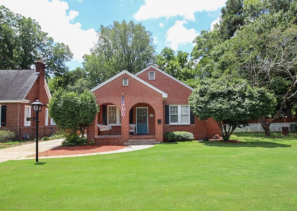 Adorable midtown house! all brick with large front porch that welcomes you into open living & dining rooms with beautiful hardwoods The spacious remodeled kitchen has an island, granite countertops & stainless appliances. Laundry and back foyer off kitchen. 3 big bedrooms with hardwoods & 2 full baths. Gas fireplace in living room and large windows with lots of natural light. 2 car carport and storage and fenced in private large double lot. Close to Lakebottom park and shopping and dining.