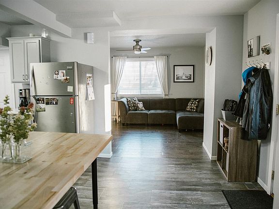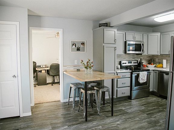 MOVE IN READY! This home features 3 bedrooms, 2 bathrooms, and a MASSIVE 2 stall garage. Walking in you'll be greeted with a nice sized living room that is semi open to the kitchen area. The kitchen cabinets are a modern grey color, stainless steel appliances, an a eat in bar area. The master bedroom is located on the main floor with a full en suite--AWESOME. Upstairs features 2 good sized bedrooms and a 3/4 bathroom. Downstairs has the laundry room and is sheet rocked. The massive 2 stall garage will not disappoint when winter months come!