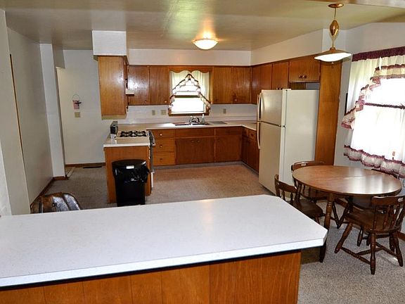 Find cute & affordable living in this property! Located close to schools, rec center, and parks, and equally close to downtown, you're just moments from everything you need. Live on one level if you choose, where you'll enjoy a living and dining space with electric fireplace, a generously-sized kitchen with eat-in peninsula that opens up to the rest of the living space, plus a bedroom and full bathroom on the main level. Bathroom is spacious and includes the main floor laundry hookups. Newer back steps/deck, newer roof, and included fridge and stove. Second level houses 2 rooms that could be nicely finished off and utilized. Don't miss your shot on this one!