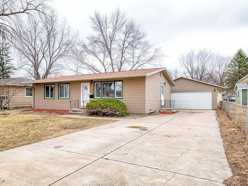 Welcome Home! This well-maintained 3 bedroom, 2 bathroom home has recently had a refresh! Newly sanded and stained wood floors, new interior paint including walls, trim, doors and kitchen cabinets and new kitchen floors. Located in a great neighborhood close to the walking trails and across from the school and park. Potential for a 4th bedroom in the basement, just needs an egress window. Step out back to the nice yard with fire pit and an oversized 2 stall, insulated garage (24' x 28'). Don't let adorable home get away!