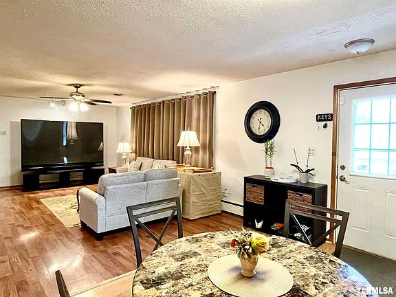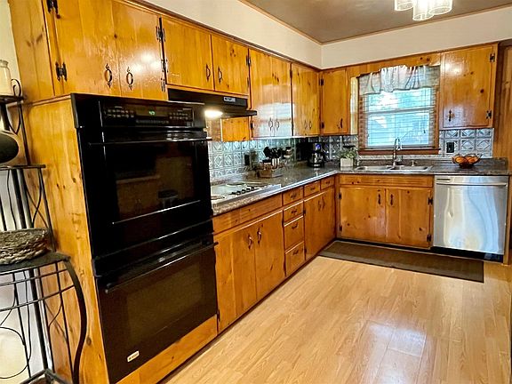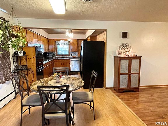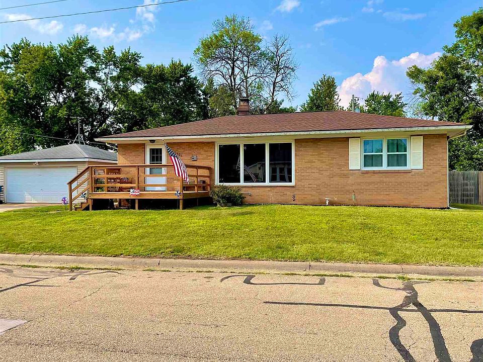 MOVE IN READY!! Beautifully maintained and clean 3 bedroom 2 bathroom brick home located in the heart of Camanche. This home features open concept living, a gorgeous knotty pine kitchen with a cook top and double ovens, central air added in 2020, a detached 2 car garage, a LARGE fenced yard with a separate dog run and a covered back porch. Roof was a total tear-off replacement in 2011, boiler was replaced in 2004 and is in excellent condition, this basement is functionally finished, tuck pointed, and includes a 4th non-conforming bedroom, storage, and a bathroom.
