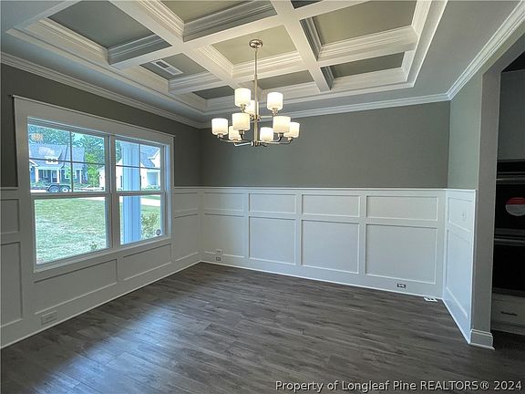 Rivermist CC2695-TW -Two-story great room with gas log fireplace. Covered porch w/grill patio. Gourmet kitchen w/island & bar seating, white shaker cabinets, subway tile backsplash, & sink overlooking great room; Stainless steel microwave, dishwasher, smooth cooktop, and double wall oven. First-floor primary suite w/tray ceiling & crown molding, & two separate WIC; Primary bathroom w/dual sinks, white shaker cabinets, walk-in tile shower, linen closet, private water closet, & tile flooring. Formal dining room w/coffered ceiling & picture frame wainscoting detail. Half bath w/pedestal sink, oval mirror, & tile flooring. Mudroom w/wall cabinets above washer/dryer connections & tile flooring. Second floor features spacious family loft open to below w/storage closet. 3 additional bedrooms w/WIC & hall access to full bathroom with vanity, tub/shower combination; Hall access to an additional full bathroom w/double vanity, tub/shower combination, and tile flooring.