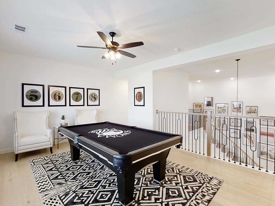 MLS# 20668391 - Built by Highland Homes - Ready Now! ~ Gorgeous home on oversized lot in cul-de-sac. Modern living with all the bells and whistles! Soaring ceilings, with beautiful fireplace. Stunning kitchen has large island, 5 burner gas stove top, built in double oven and microwave. Quartz countertops, and pot filler over the stove. Modern barn doors in primary suite to luxury spa bath. Downstairs media room for family fun movie nights. Upstairs, there is lots of room for the kids. Energy efficient home!