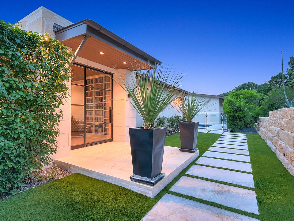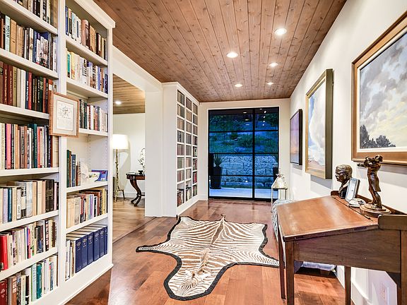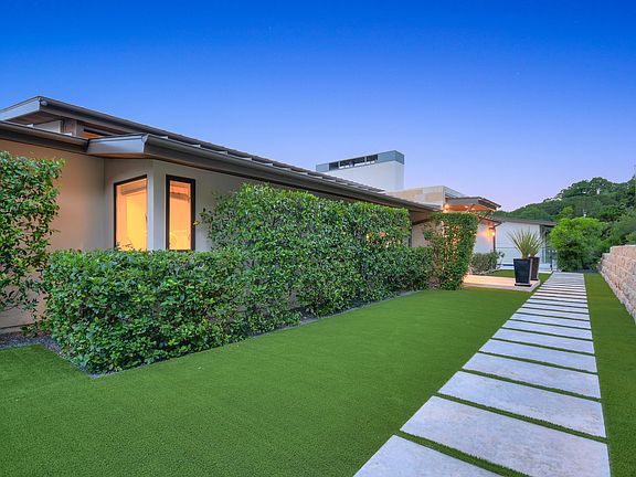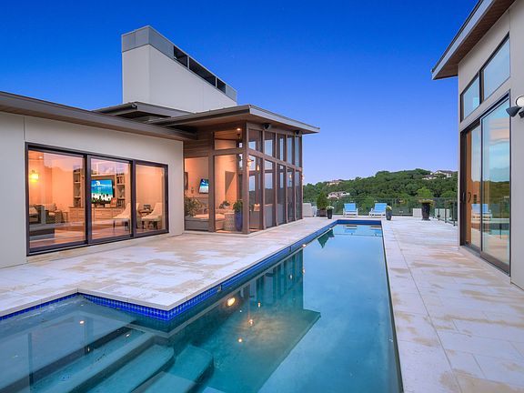 Comfortable luxury in West Lake Hills. Private retreat situated on 2.395 acres. Scenic Hill Country views span the entire length of the property. Dramatic walls of windows and doors connect the inside and outside seamlessly. Open living and dining areas with tall ceilings, wide plank mesquite floors, walls of book shelves and incredible detail throughout. Private master features his+hers baths and a spectacular closet. The screened in porch is a lovely outdoor living room that's great for all seasons. Striking lap pool and columned pergola covered with fragrant Jasmine. Magnificent grounds with various majestic trees and lush landscaping. Custom finishes, impressive architectural detailing and myriads of designer fixtures throughout, fuse together creating an estate of grandeur and comfort.