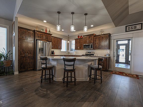 Better Than New! The moment you enter this two story home, you are greeted with warm, neutral elegance! The home has a total of three bedrooms, three bathrooms, main floor laundry, plus an amazing three seasons room and upgraded garage! In the living room there is an electric fireplace that captures the room. Off the living room is a half bathroom. The kitchen blends warmth and modernity with rich alder cabinets and a complimentary white island that takes center stage. The kitchen also features stainless steel appliances (including a gas stove), quartz countertops, above and undermount cabinet lighting, and a sleek subway tile backsplash. Off the kitchen is a fully enclosed, desirable three seasons room with a stamped concrete floor. The space has a plethora of windows to enjoy the North Dakota outdoors without all the bugs! Truly an amazing space. Tucked off the main living area is the spacious master suite. The tray ceiling has ambiance lighting creating an inviting place to relax. There is also a walk-in closet. The master bathroom is separated from the bedroom by double sliding barn doors. The master bathroom has two separate sinks (with toe kick accent lighting), a large corner soaker tub and great storage. The toilet and tile shower are separated from the rest of the bathroom by a traditional door for extra privacy. Head upstairs and see the beautiful black and stained railing on your way. Upstairs you'll find two bedrooms, a storage closet, spacious full bathroom, and a view of the living room down below. The large extra living room upstairs offers both space and functionality. The garage is next level. Its heated, has a floor drain, epoxy painted floor, and has a bonus area in the back. The exterior of the home is beautiful in the summertime with the plants and professional landscaping.