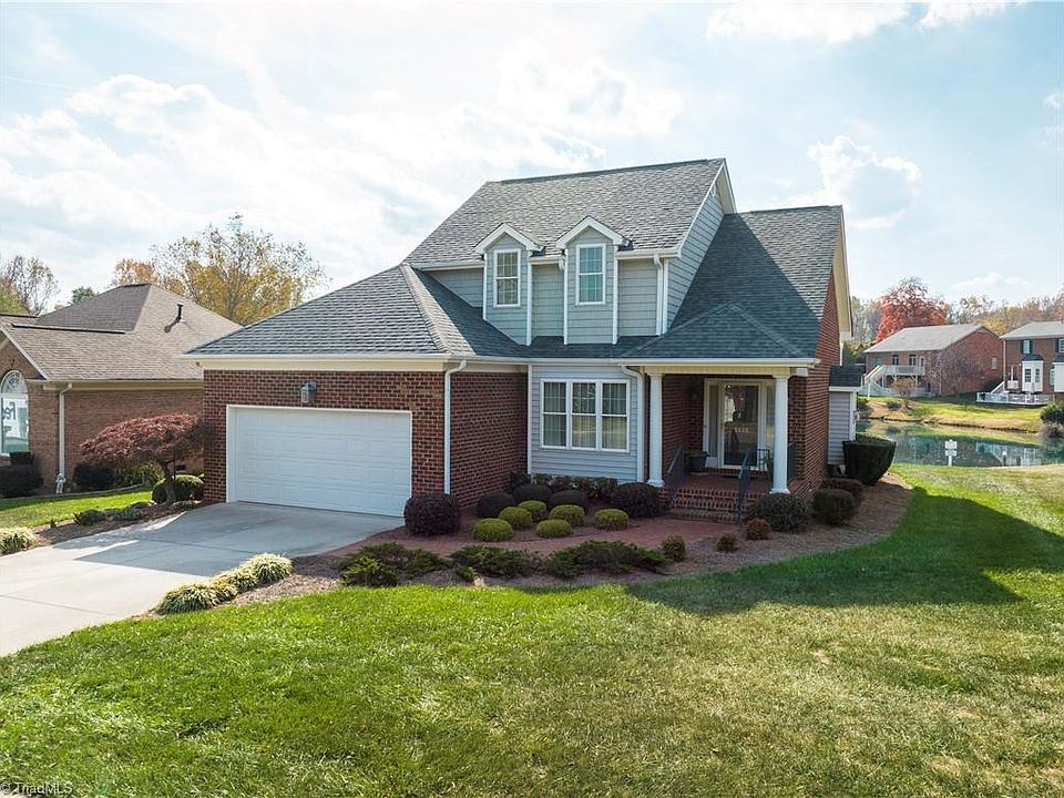 Nestled in the heart of Kernersville, this 1.5 story cluster home offers a harmonious blend of modern living and small-town charm. Past the brick exterior, the warmth of the fireplace greets you in the great room with vaulted ceilings. The kitchen features tons of cabinets, granite tops, updated appliances, and tile backsplash. The breakfast area with views of the pond and backyard access invites you to unwind while surrounded by nature. The large primary suite on the main level is a sanctuary of its own, featuring a garden tub and tiled shower for a spa-like experience right at home. Upstairs 3 secondary bedrooms, share a full bath. A gym, and playroom as flex space was designed to provide the freedom to shape your living space according to your unique needs and preferences. Attached 2 car garage, and ample storage space. Bonus, lawn care is included in the low HOA fee adding extra convenience, and making your daily routine a breeze! Don’t wait, schedule your showing today!