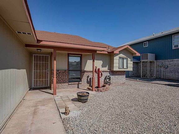 Fall in love with this charming well maintained home. Great split floor plan, walk-in closet, stainless steel appliances no carpet throughout and so much more. This home presents a comfortable and updated feel throughout. Easy to maintain front yard covered patio and storage shed Quiet neighborhood close to Holloman AFB. Community swimming pool, tennis court, playground etc. HOA fee is $25.00 per month. Check out the 3D tour!