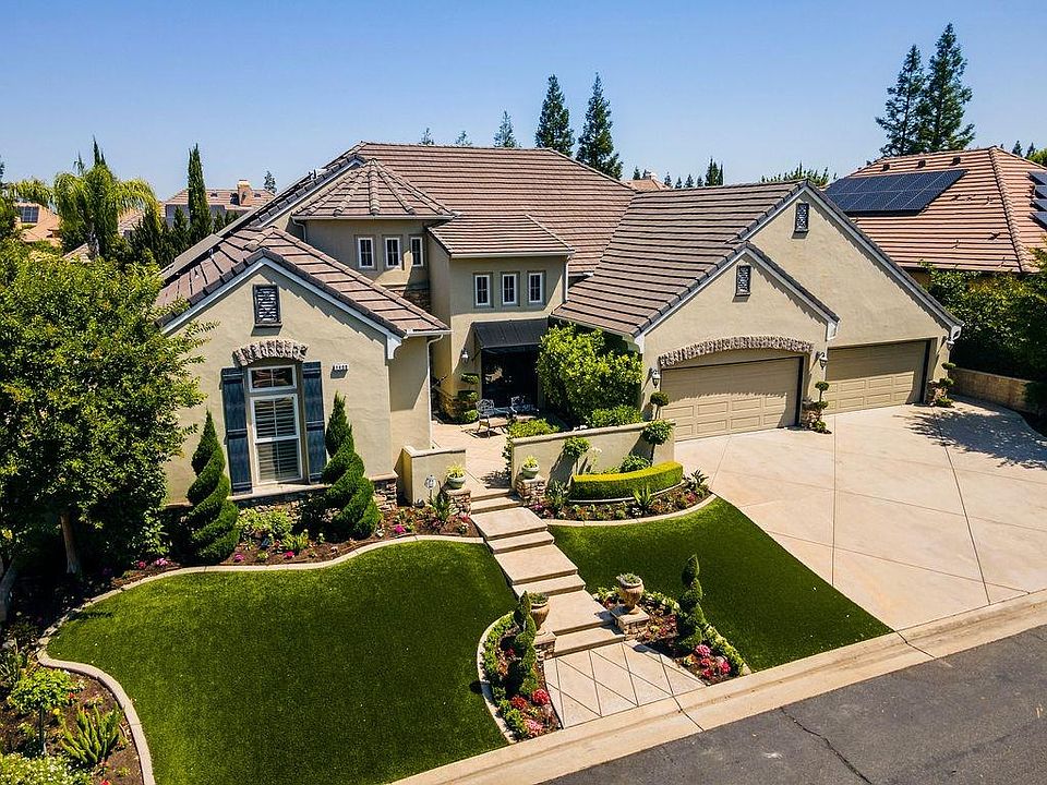 Introducing classic combination of elegance and FUN, in the highly sought after / prestigious Gated Community of Country Club at The Fort! A wonderfully appointed SINGLE STORY custom built by Elite Homes, 4BR/3BA, boasts a generous 3843sf. Conveniently located near shopping, fine eateries and award winning Clovis Schools.Entertainers Delight backyard w/ newly designed Pool AND SWIM UP BAR, spacious Cabana: top-of-the-line: Summerset BBQ, Refrigerator, Stainless sink, 65'' TV & more!PLUS lighting system and water/fire feature w/ remote, new irrigation system, expansive stamped concrete.Gourmet Kitchen, flows to the dinette area. With no end of options: gas range, Pot filler Faucet, custom hood, Bosch Oven, warming drawer, microwave, built-in Refrigerator/Freezer combo, walk-in Pantry and Wine Frig.Family Room and separate Living Room, with built-in cabinets; isolated 4th Bedroom or Den, with independent full bath. The Master en-suite features EVERTHING you could want: coffered ceilings, yard access, sitting area, spa-like bath: double sinks, large step in shower, tub, vanity space, plus an oversized closet - an organizers delight!All of this AND:26 panel OWNED SOLAR! 10.6kW SystemSynthetic lawn (front)Finished 4 car garage, with extra Storage ClosetsThis home is ready for you and offers gracious living, with an entertaining flare. Don't miss your chance for it to be yours!