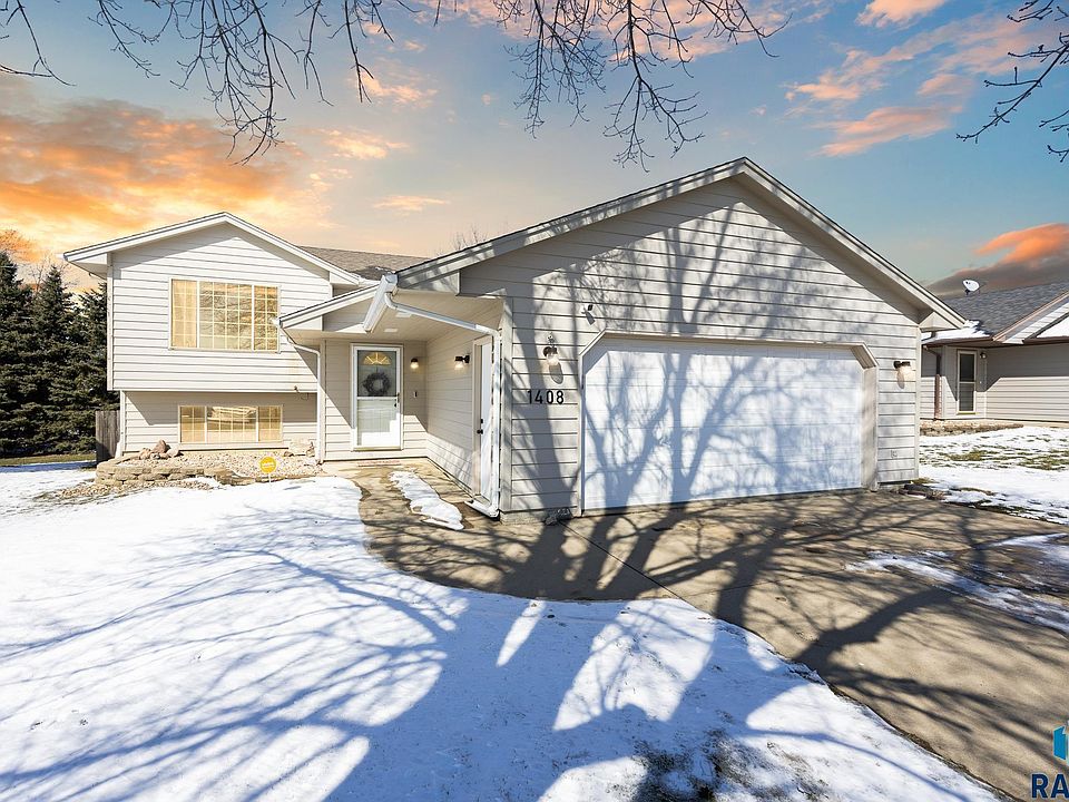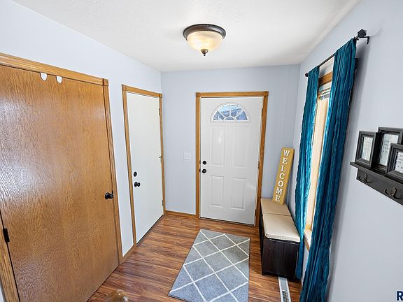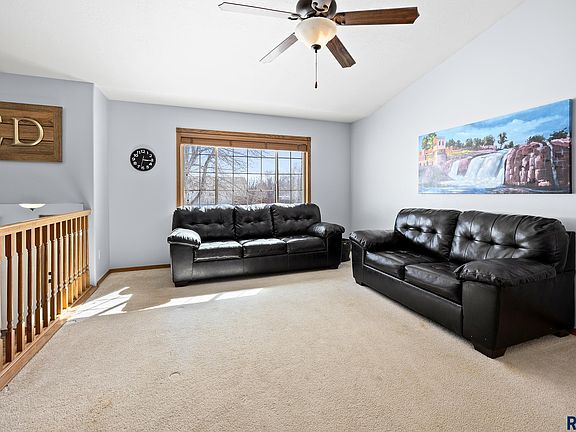 Great home in a quiet area, just outside of Sioux Falls! Walking in you will appreciate a nice large foyer with coat closet and window, that lead upstairs to a sun filled, open concept living space with vaulted ceilings and plenty of space, and tons natural light! The kitchen hosts newer stainless appliances, breakfast bar, and plenty of counter and cabinet space, plus dining room is nicely sized and the patio door leads to the almost new, all cedar deck! The main floor is completed with 2 bedrooms, both with double closet, and a nice larger full bath with linen storage. Downstairs you will find a large family room with a convenient patio door to the backyard, a 3/4 bath and another bedroom and utility room. The backyard is a great space to hang out and play with the privacy fence and tall evergreen trees that make it completely private along the back fence. Enjoy the peace outside of city limits, and appreciate the lower taxes! $6200 check to buyer for flooring at closing!