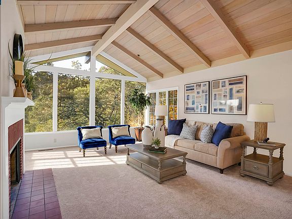 This beautiful 4 bedroom, 3 bath home nestled at the end of a quiet cul-de-sac, offers a generous 1.05 acre lot in the prestigious Spring Hill neighborhood! Greeted by an abundance of natural light throughout the spacious main floor, the living room features vaulted wood ceilings, picturesque views of mature oak trees & rolling hills.The brick fireplace & built-in shelves create an inviting ambiance, while the formal dining room sets the stage for elegant gatherings.The kitchen features white cabinetry, 2x ovens, recessed lighting & a center island. On the main level, you'll also find 1 bedroom & a full bath, convenient for guests or home office. Hardwood floors complement the main level adding class & sophistication.Retreat to the primary bedroom with an ensuite bath, boasting a 2x sink vanity & shower/tub, as french doors lead to an outdoor deck. Find 2 additional bedrooms, a split hall bath, & laundry room. Be amazed by the expansive deck, overlooking a private oasis with panoramic views above the sparkling swimming pool & spa. Walking distance to Spring Hill Elementary & minutes to shopping, dining, & freeway access.Embrace eco-friendly living with the owned solar panels. Don't miss the opportunity to make this exceptional home yours.