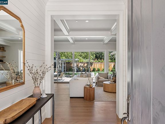 Nestled on a picturesque, tree-lined street in highly desirable West Alamo, this single-story ranch home has been thoughtfully renovated and designed to perfection. The entryway flows seamlessly into a breathtaking great room featuring elegant, coffered ceilings, a whitewashed brick gas fireplace with a custom wood mantel, and built-in shelving with storage. The chef’s kitchen is a showstopper, boasting a spacious island with quartz countertops, a Thermador 6-burner range with a custom hood, dual sinks, dual Bosch dishwashers, and a paneled built-in refrigerator/freezer. Butler's pantry includes dual ovens, beverage fridge and extra storage. The serene primary suite offers a vaulted, wood-beamed ceiling, an ensuite spa-like bathroom, dual sinks, a stall shower, and an oversized walk-in closet. Two large guest bedrooms with extensive molding and designer touches are down the hall. A private guest suite with its own full bath is tucked away on the opposite side of the house. Step outside the great room to a professionally landscaped backyard, featuring elegant herringbone brick hardscaping, sitting area for entertaining, and a private spa with outside shower. Lastly a spacious bonus room is attached to the garage making a perfect office or home gym. Inside laundry room with sink.