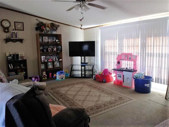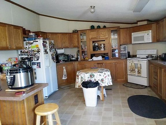 Spacious double-wide with 3 bedrooms 2 baths, an office, and bonus family room on approx. 4 acres. Extra large walk-in closet in Master bedroom. Lots of cabinetry for storage throughout the home.
