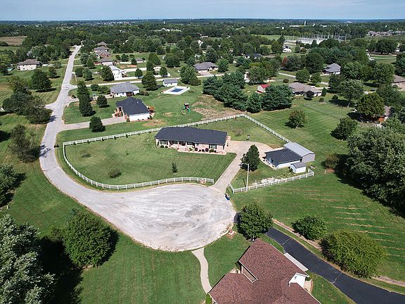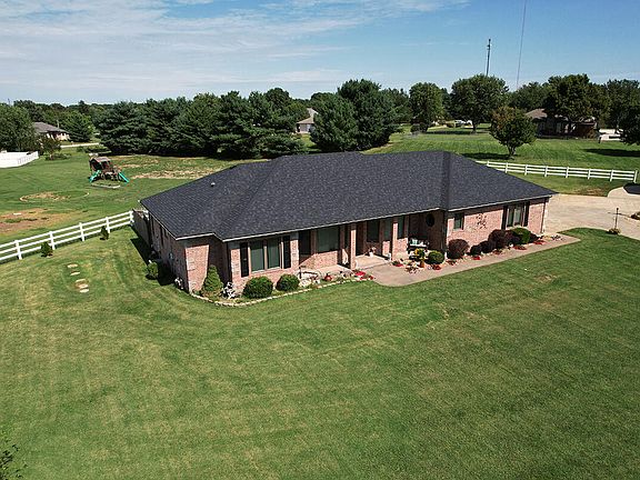 1408 Four Winds Drive is an all brick and stone, one level home with plenty of space for all your cars, boats, ATV's and RV. Conveniently located in North Nixa, and with almost 2500 sf of living space, this 3 bed, 3 bath, 3 car garage home is ready for new owners. Entering this custom home you'll find high ceilings and tile entry to the open floor plan which flows between the hardwood floored dining, kitchen and 2 living areas, one with a stone fireplace (gas). The large main bedroom has a spacious bath, office with French doors, and a covered back patio area- separate from the covered patio off the living room. The 2 other bedrooms are large and have a full bathroom right across the hall. The spacious kitchen has a new gas stove, granite topped island, large pantry, new dishwasher and new refrigerator. The laundry room has new frontloading washer and dryer and another full bathroom. Featuring a ranch- fenced perimeter, this 1.03 acre property also has a separate 28' x 25' 2 car garage/ shop that has a half bath and central heat and air. To the side of the shop is a large carport, and at the back, a shed and graveled area for your RV with 50 amp service. The yard has been beautifully landscaped and both roofs replaced Dec. 2021. Home also features a water softening system and a new hot water heater. Call today to see this unique Nixa listing!