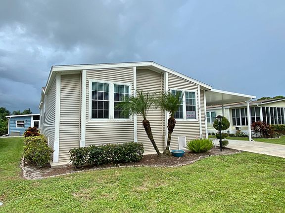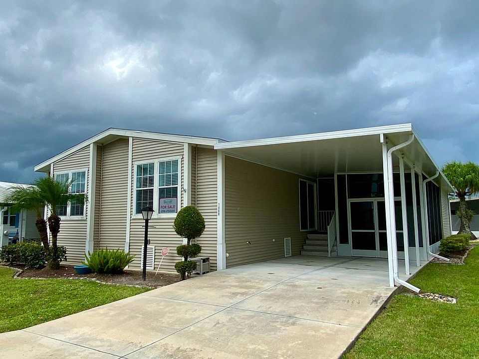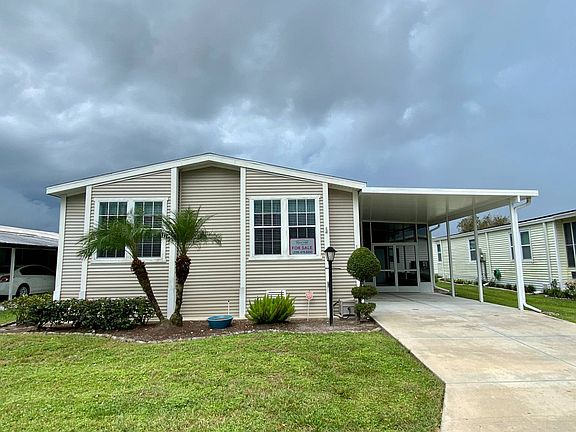 Are you looking for a recently manufactured home with it's own perks? This partially furnished 2013 3 Bed / 2 Bath home has more than 1,200SQFT of space and a modern rustic kitchen with oven/range, fridge, and microwave included. Washer and dryer are also included. Even more impressive is the large kitchen island just off of the living room. Laminate flooring throughout with exceptional additions such as ceiling fans, built-in cabinets, and crown molding. The exterior of this home is just as impressive with comfortable screened-in porch area, tool shed, and a sprinkler system. Don't let this home slip away. The Landmark boasts 2 beautiful clubhouses, 2 heated pools with large Sundecks, shuffleboard, a fitness room, bocce ball, a billiard room and much more. There are planned activities throughout the park.