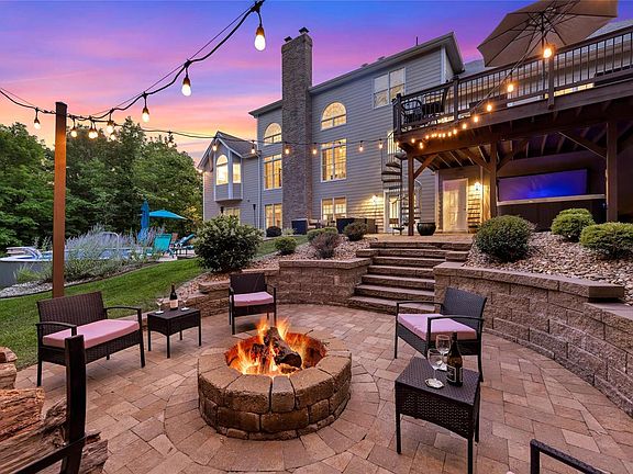 Beautiful 1.5 story on gorgeous 3/4 acre lot backing to trees! Indulge in the luxury of your own private oasis with sparkling pool w/heat pump and huge multi tiered patios, an amazing fire pit perfect for gatherings. On the main floor you find a large 2 story entry, great room w/fireplace, elegant separate dining room. Updated kitchen with granite counter tops, 42 inch cabinets, double ovens, walk in pantry, gas cook top open to breakfast area with lots of natural light & hearth room with gas fireplace, double french doors leading to a large deck with amazing views. Main floor master suite with vaulted ceiling, his and her walk in closets & luxury bath where you can relax in the whirlpool tub open to the full view of the resort style back yard. Three additional upper level bedrooms with a private bath and a Jack & Jill bath. Finished walkout LL with amazing views of the pool, rec room, third fireplace, wet bar, exercise and steam room, full bath w/loads of storage.