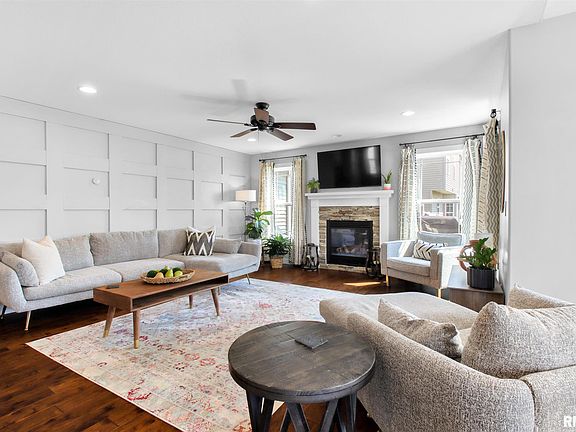 Beautiful, custom built home with many upgrades! Great curb appeal from the charming front porch flanked w/ stone pillars to the professional landscaping! Walk in to the foyer w/ partially open staircase & be prepared to be impressed! Stunning custom kitchen featuring stainless appliances, large island & epoxy marble counter tops! Open floor plan! Custom feature woodwork wall in the fireplaced great room! Large dining area overlooking the backyard. Hardwood on the entire main floor! Finished basement with rec area, full bath, guest bedroom & plenty of storage! Upstairs you will find three bedrooms including the impressive master suite w/ walk-in closet, plenty of natural light & a great master bath w/ dual vanity, custom tiled shower & whirlpool tub! The other two generously sized bedrooms share a full bath. Enjoy the fenced yard w/ shed from the serene deck w/ pergola & sunshades! Whole house audio & fiber optic wiring! Walking distance to the high school & shopping! Don't miss out!