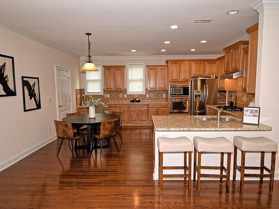 Stunning Neo-Classical home in the heart of award-winning Kitts Creek! Enter through the full-width, rocking-chair porch and step into the inviting two-story foyer with gorgeous hardwoods throughout the main level. Upscale kitchen with granite, eat-at counter, SS appliances, gas cooktop, refrigerator, walk-in pantry and ample cabinets. Open breakfast area and family with access to the private patio. Separate dining room/office. FIRST-FLOOR GUEST SUITE WITH FULL BATHROOM. Upstairs, the primary bedroom with its vaulted ceiling leads out to Juliette’s balcony :-) Huge wic, separated vanities with dressing table, large shower with separate soaking tub add to the luxury. Good-sized secondary bedrooms and a HUGE bonus/media room. The floored walk-up attic offers all kinds of expansion potential. This wonderful home is just steps to the super clubhouse, community pool, playground, common space and the node for the (free) Morrisville Shuttle that links to the RTC. Enjoy the ambiance and charm of this pedestrian-friendly community in the heart of the Triangle! So close to RTP & super-convenient to everywhere.