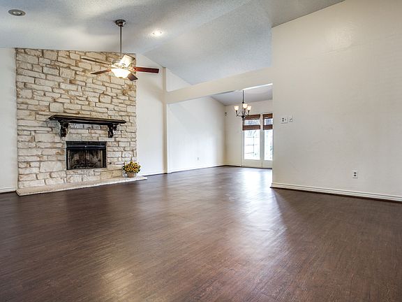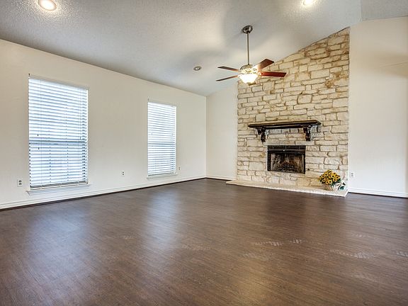 Charming single story home in Mesquite with tons of upgrades! Stunning wood flooring leads you from the entry to the family room and dining area and continues through the kitchen and master bedroom. The oversized family room boasts a gorgeous Austin stone fireplace and opens to the dining area and chef's kitchen complete with granite countertops, a tumbled marble backsplash, gas cooktop, custom cabinetry, and more. Upgraded fixtures can be found throughout the home. The master suite is spacious and includes a master bath with granite countertops, custom cabinetry, and upgraded tile in the shower. The two guest rooms and an updated full bath are perfect for family or out of town guests. The huge backyard offers a pergola and plenty of space for barbecues. Ideally located near major highways, shopping and restaurants. This is one not to miss!