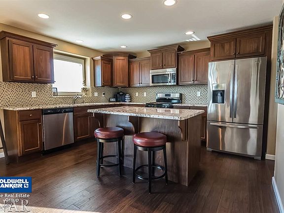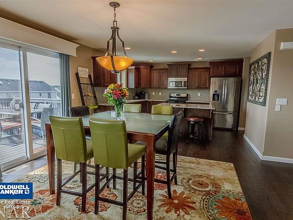 Fabulous Find in The Grove on Kickapoo Creek! Eat-in kitchen features Granite counters, island, pantry, beautiful hardwood floors, plentiful cabinet space, custom blinds and opens to the family room with gas fireplace. Doors lead to the deck and fenced yard with patio, great for entertaining. 2 story foyer. Large master suite with vaulted ceilings, garden tub, separate shower, double sinks, the enormous walk in closet. Utility room is upstairs to make laundry a breeze. Finished walk-out lower level with family room & 5th bedroom and 3rd full bath. Tiled baths throughout. Bring your family home!